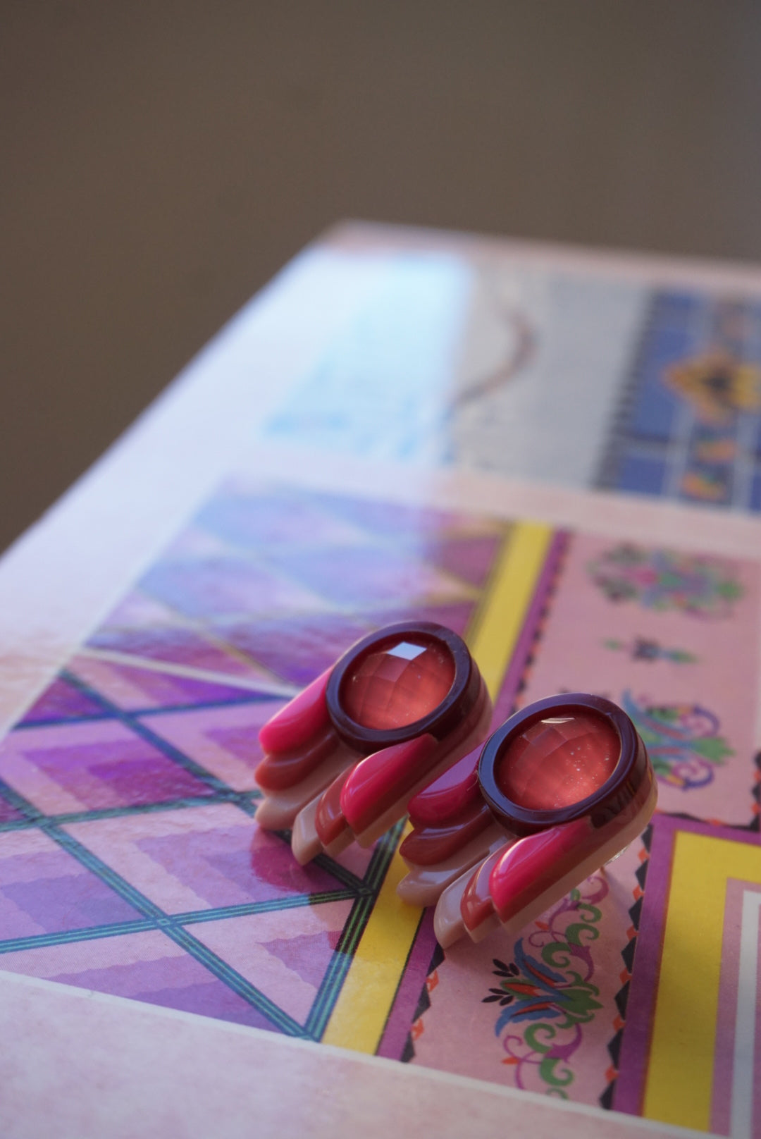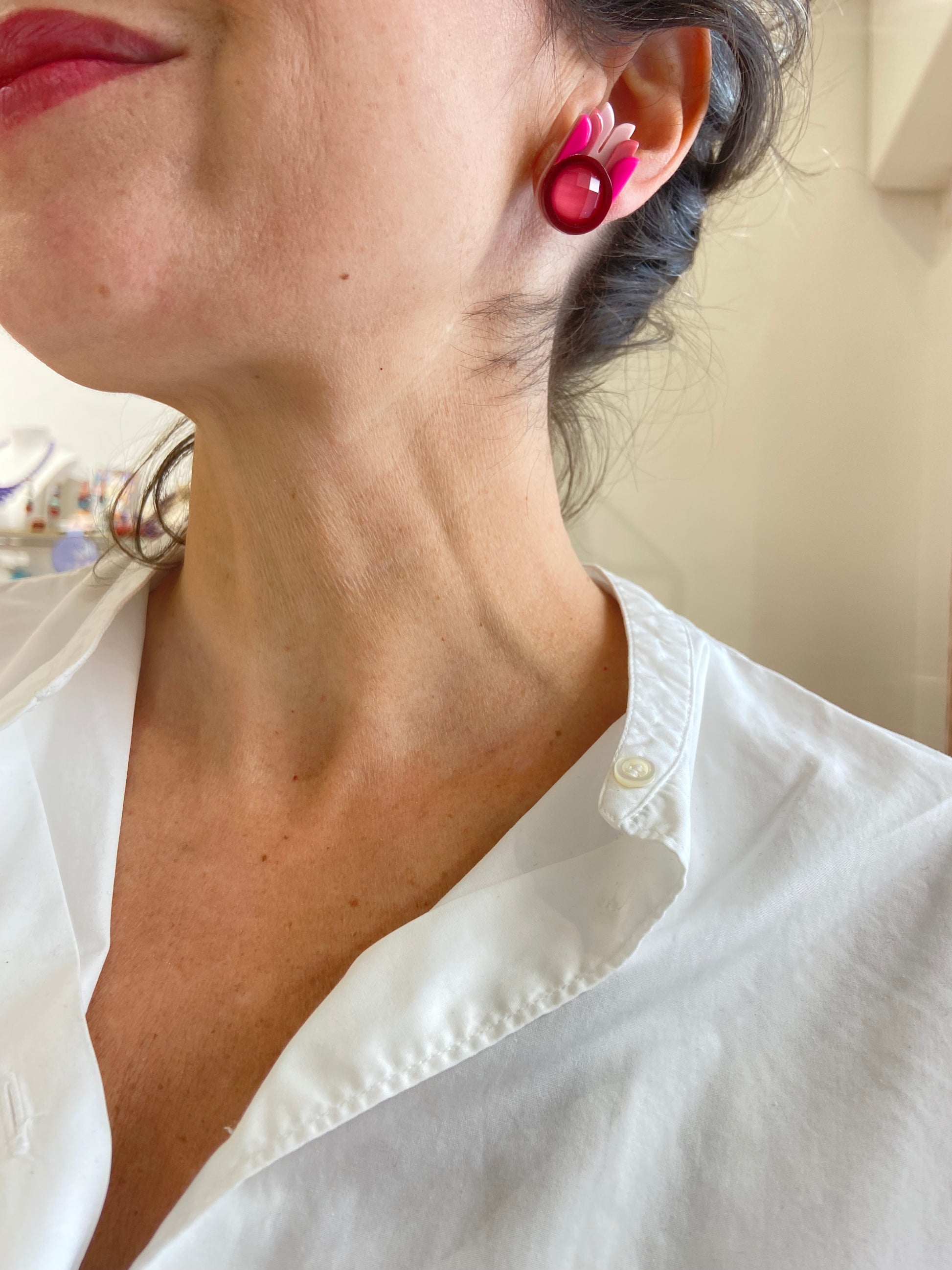 Orecchini realizzati artigianalmente in Brasile con lastre in acrilico di prima qualità e ad alta densità cromatica. Con perno anallergico.