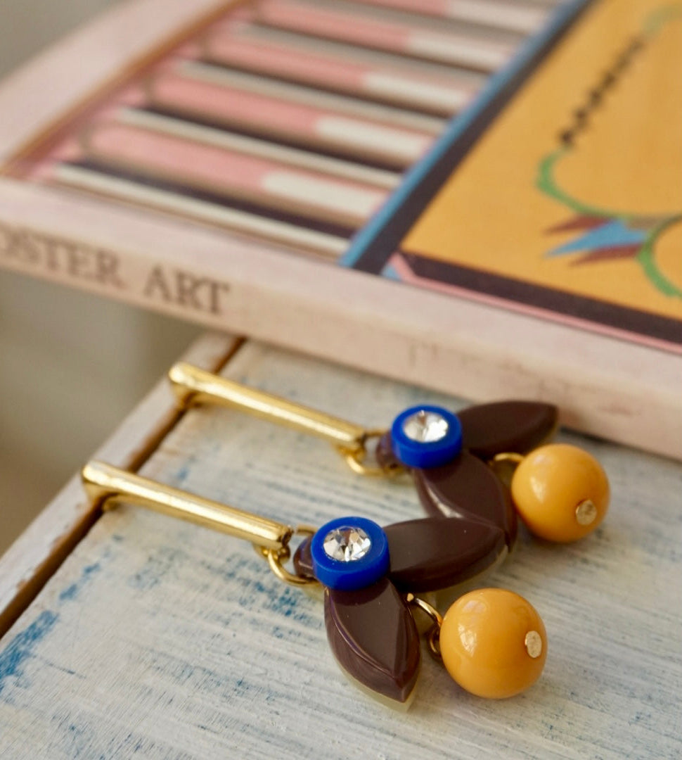 Orecchini realizzati artigianalmente in Brasile con lastre in acrilico di prima qualità e ad alta densità cromatica. Con perno anallergico.