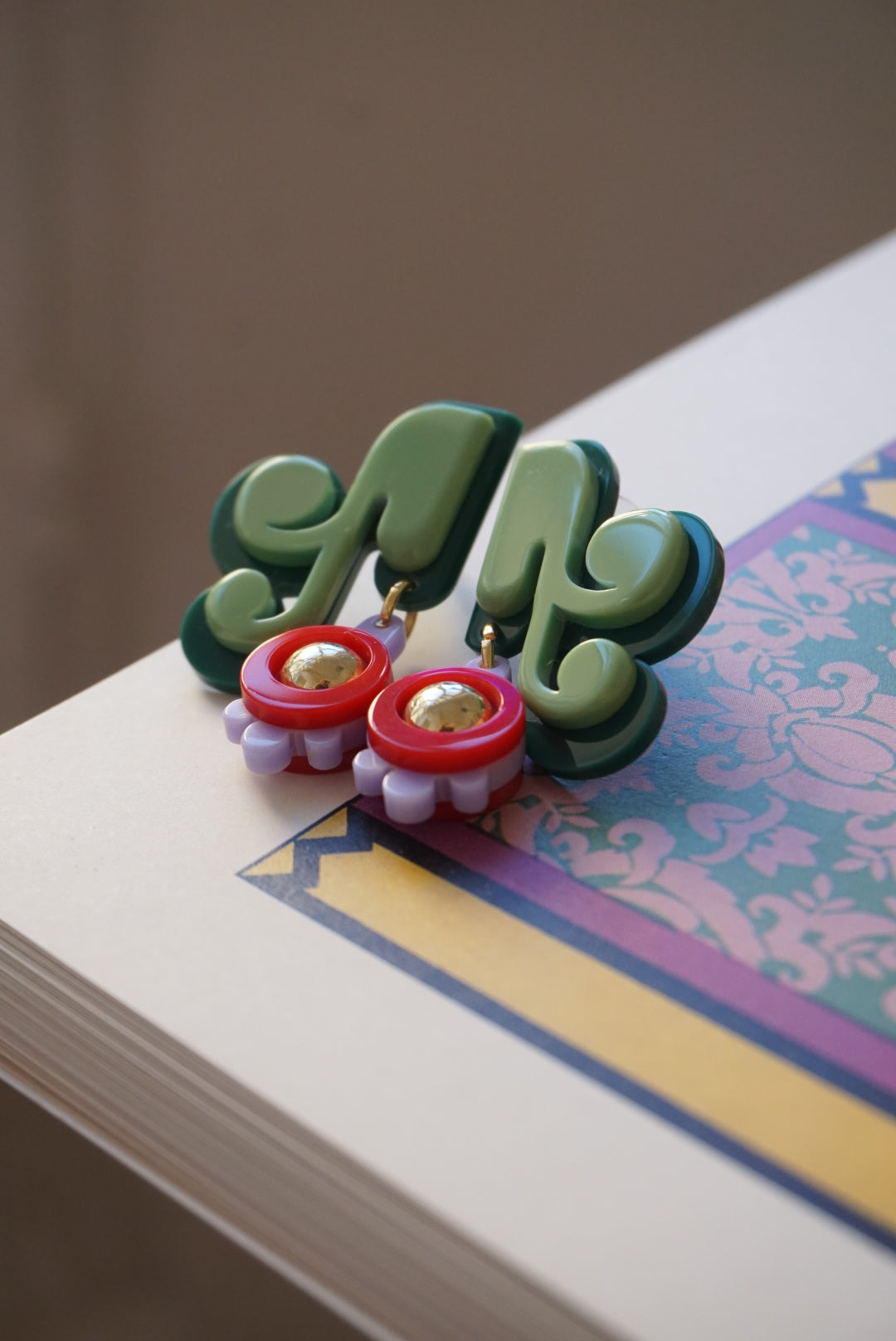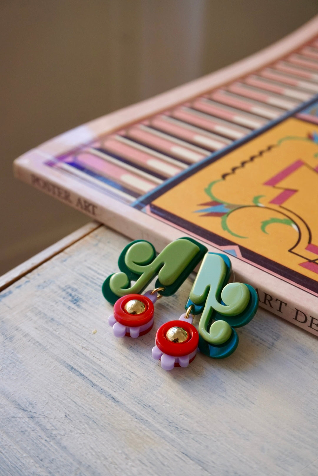 Orecchini realizzati artigianalmente in Brasile con lastre in acrilico di prima qualità e ad alta densità cromatica. Con perno anallergico.