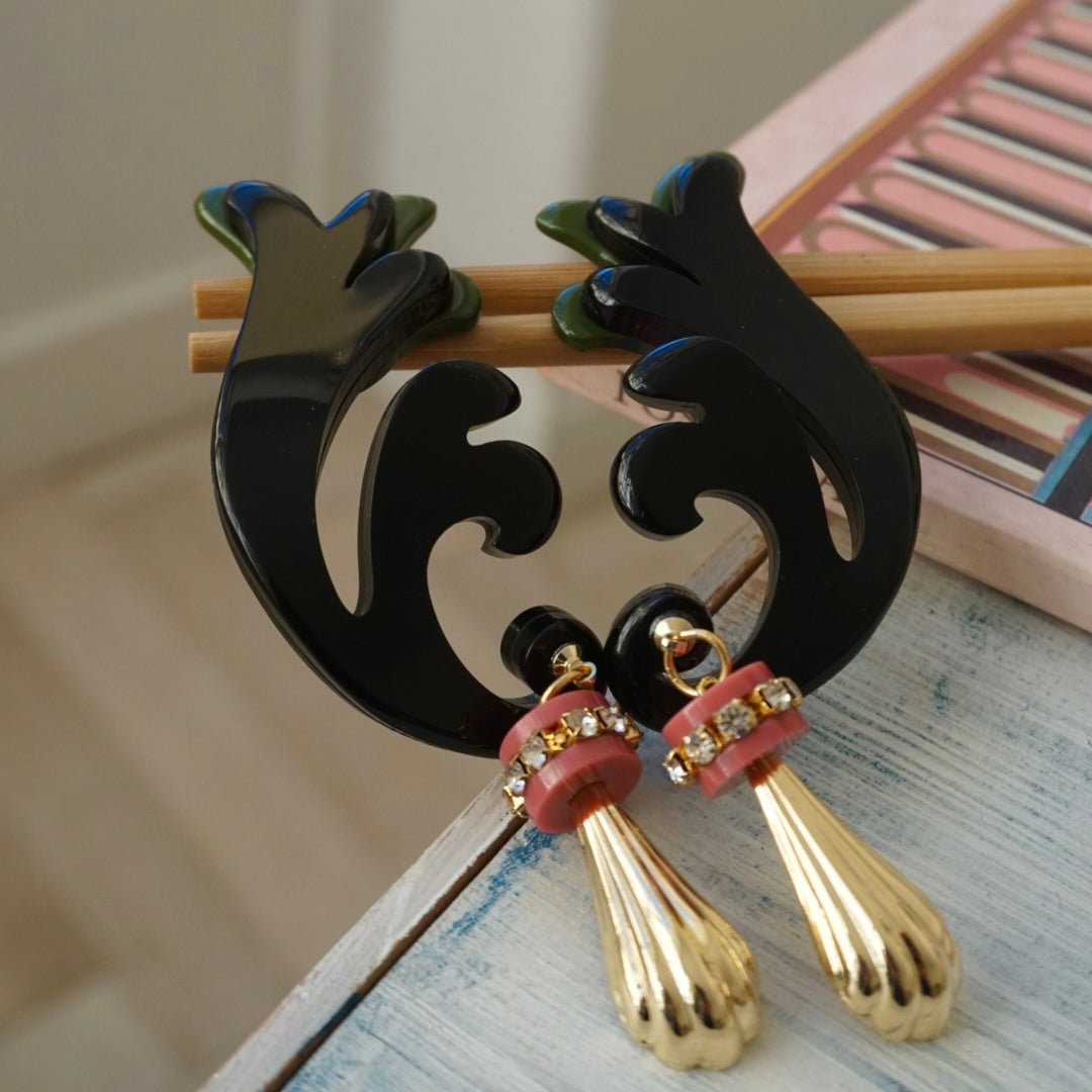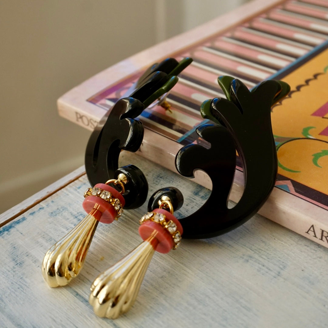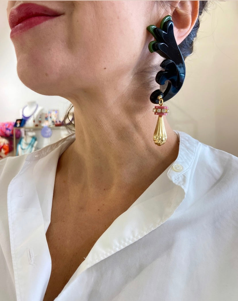 Orecchini realizzati artigianalmente in Brasile con lastre in acrilico di prima qualità e ad alta densità cromatica. Con perno anallergico.