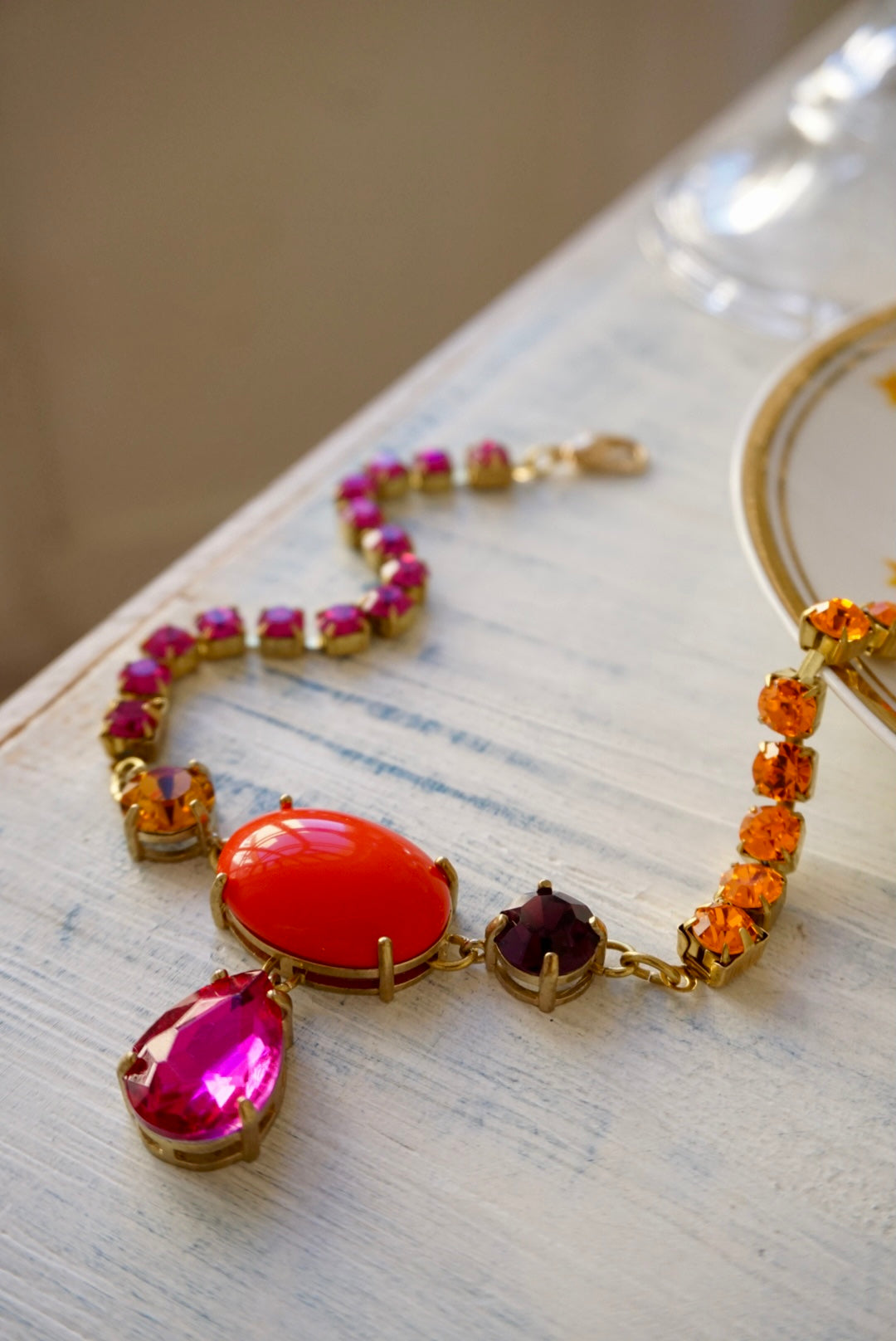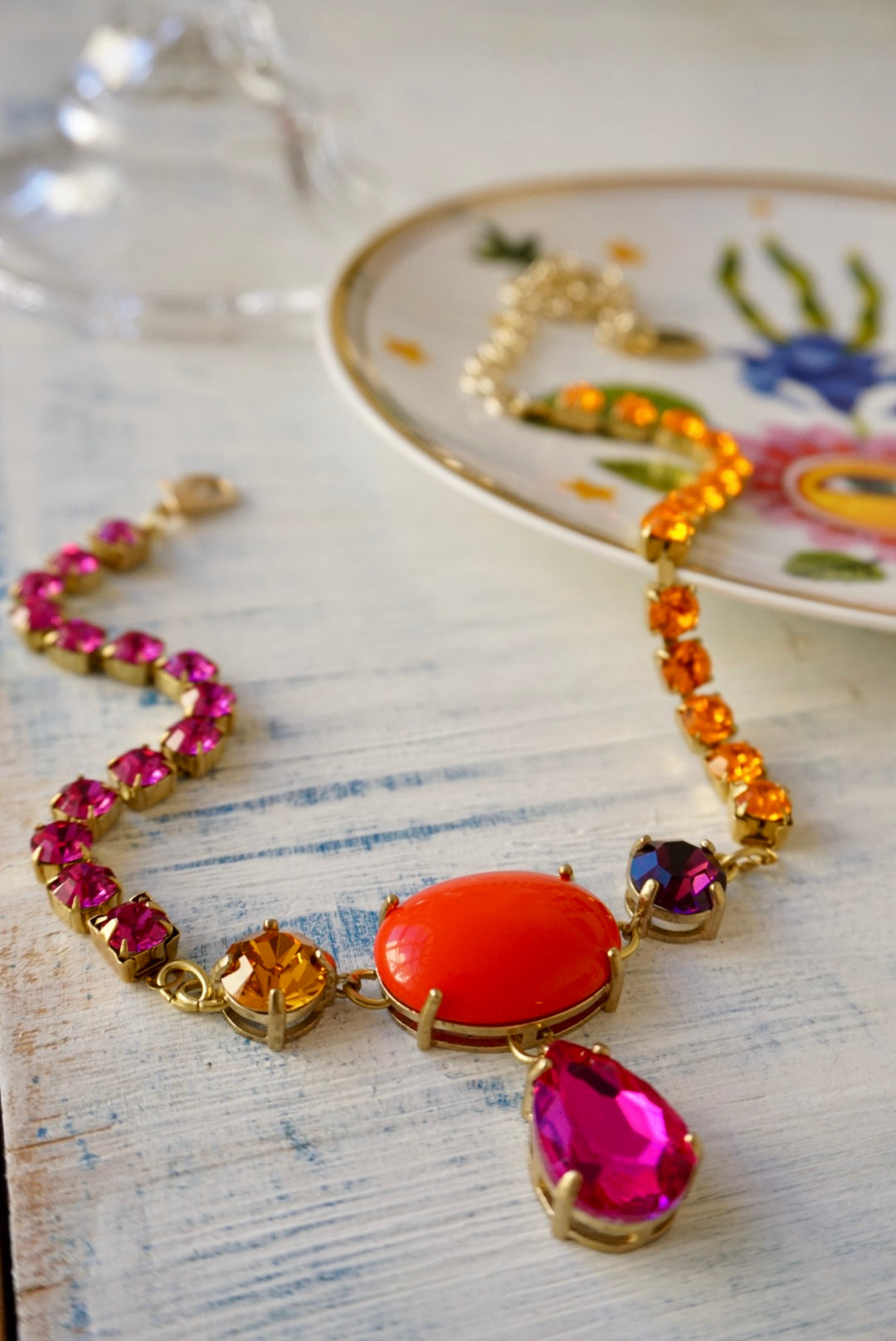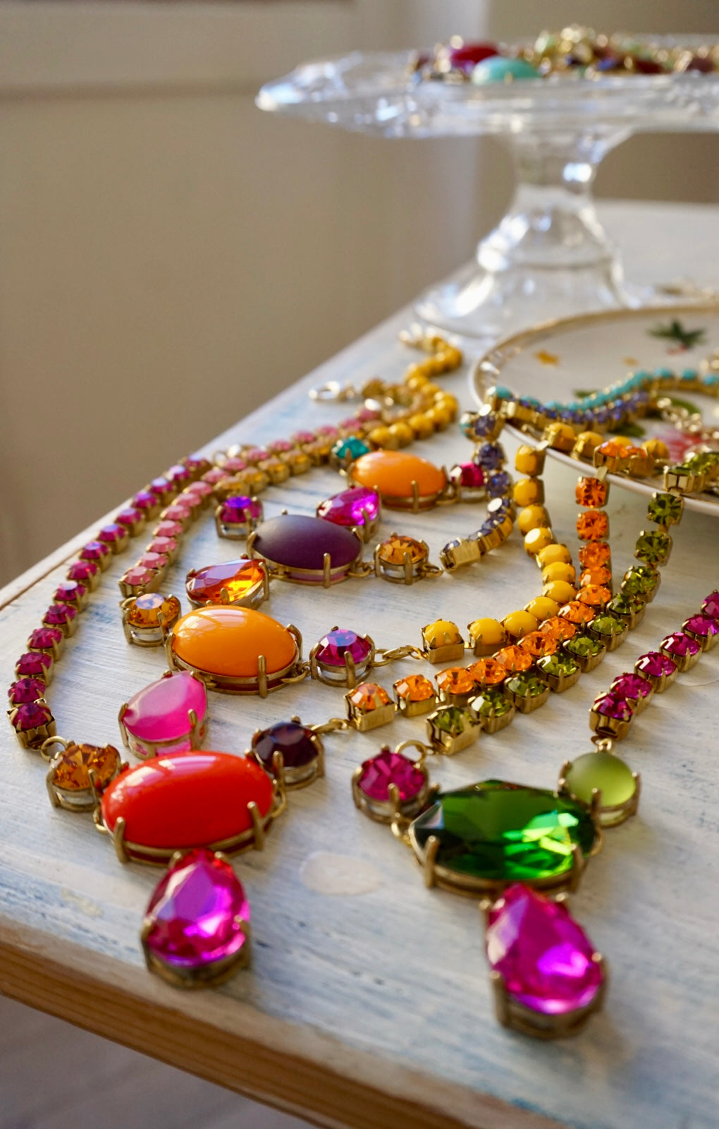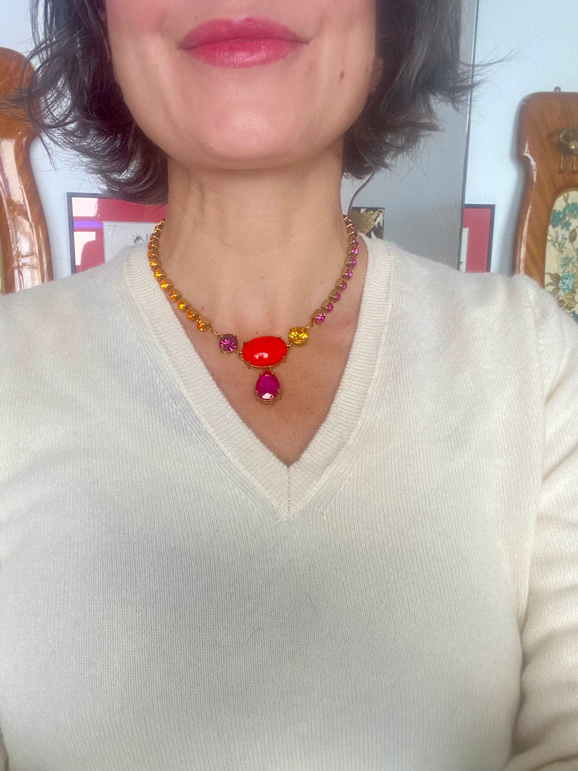 Girocollo ideati e creati artigianalmente da Vincenzo Spanò con cristalli, resine e paste vitree di alta qualità, in una gamma di palette incredibili, come solo lui sa fare!