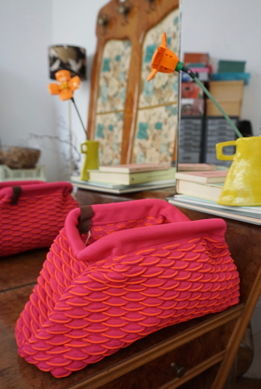 Clutch in tessuto strutturato, leggere e capienti. Realizzate in Olanda con colori e texture fantastiche.