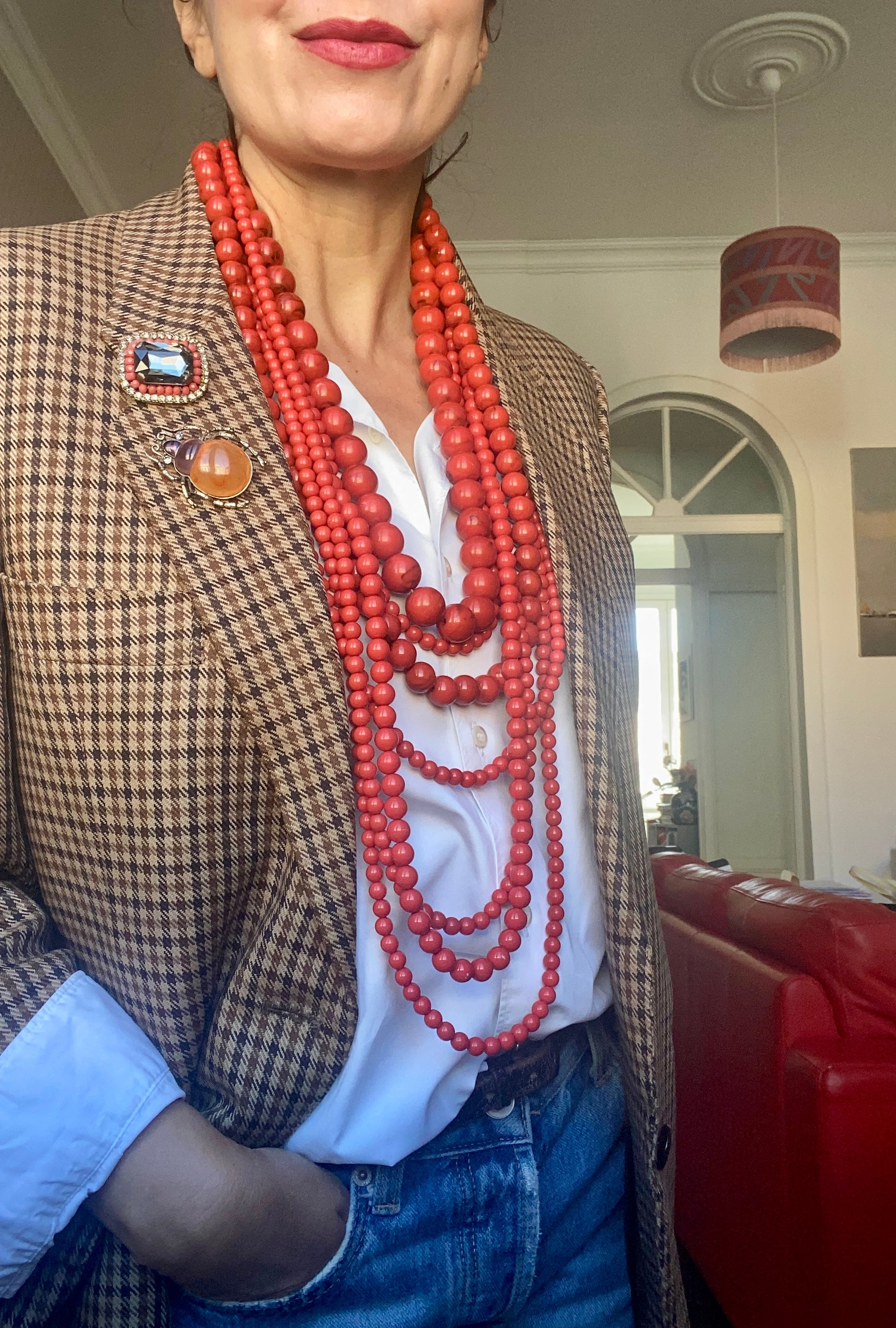 Le varie lunghezze dei giri, da 65 a 100cm, permettono di vestire completamente il décolleté e dare opulenza anche all’ outfit più semplice.