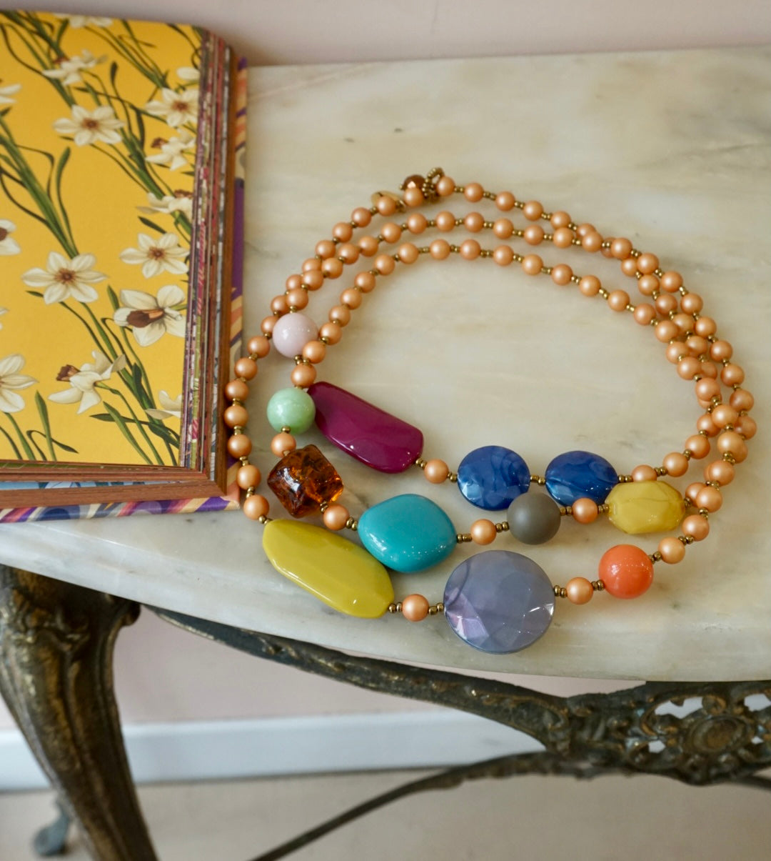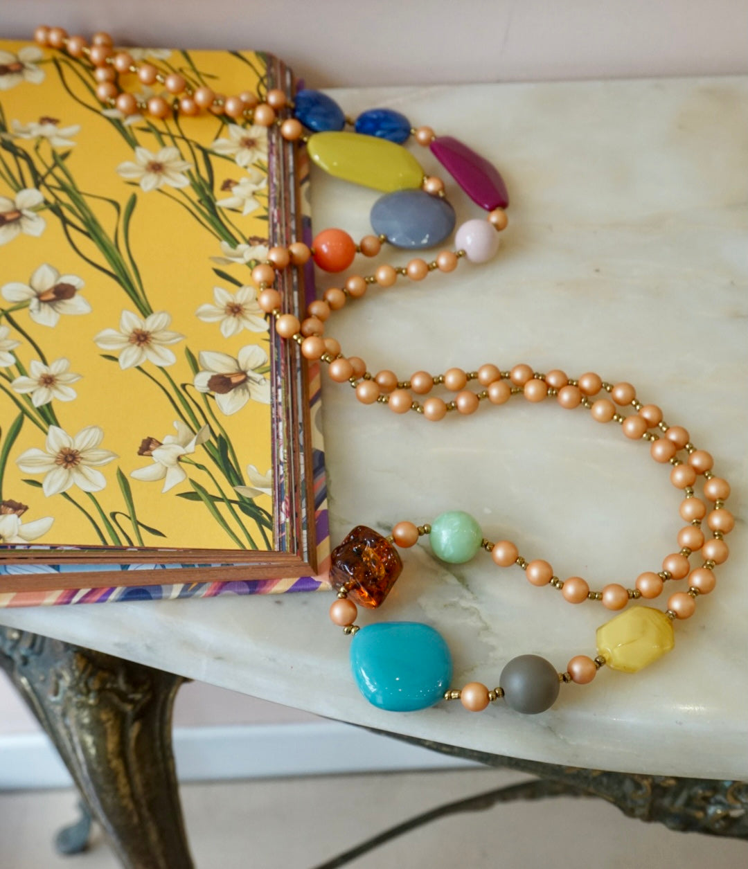 Collane lunghissime (140cm circa) realizzate artigianalmente con resine italiane di alta qualità, colori brillanti ed effetti sorprendenti.