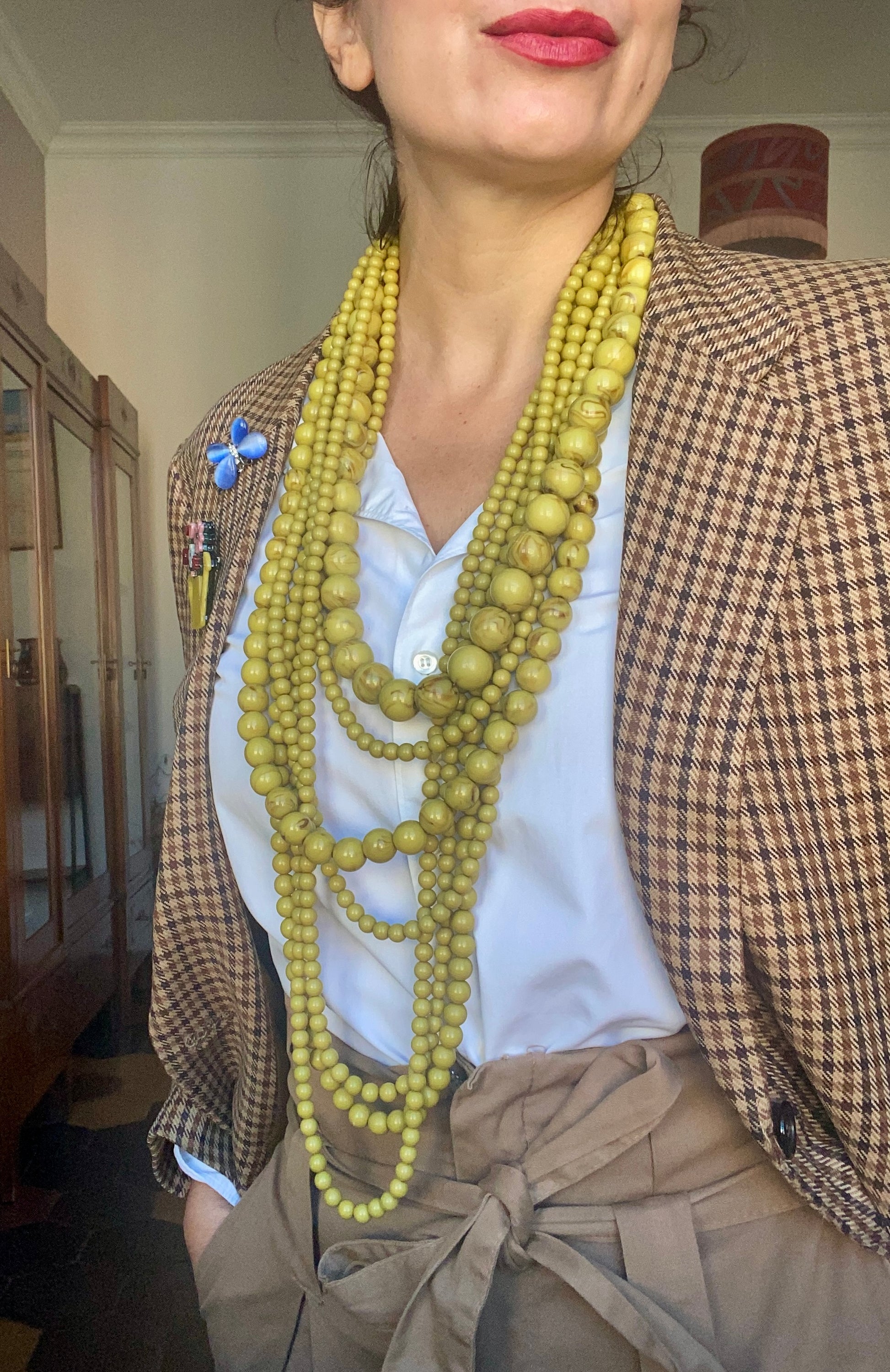 Le varie lunghezze dei giri, da 65 a 100cm, permettono di vestire completamente il décolleté e dare opulenza anche all’ outfit più semplice.