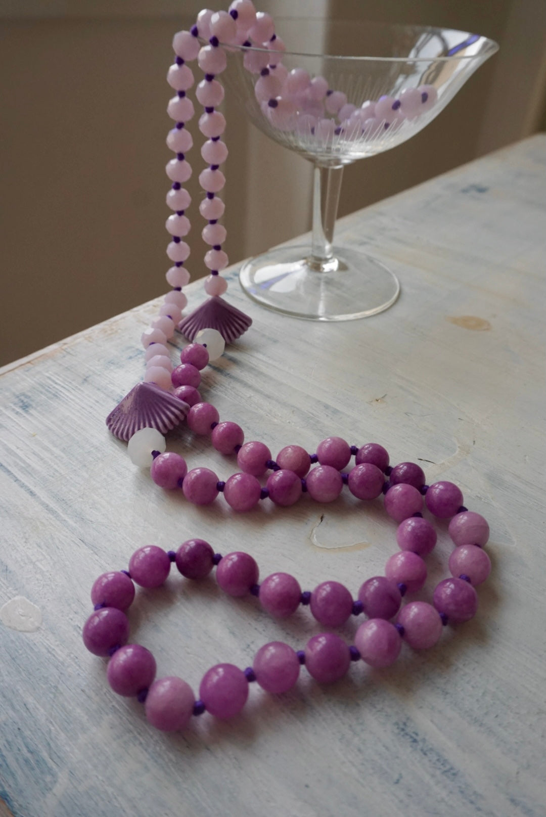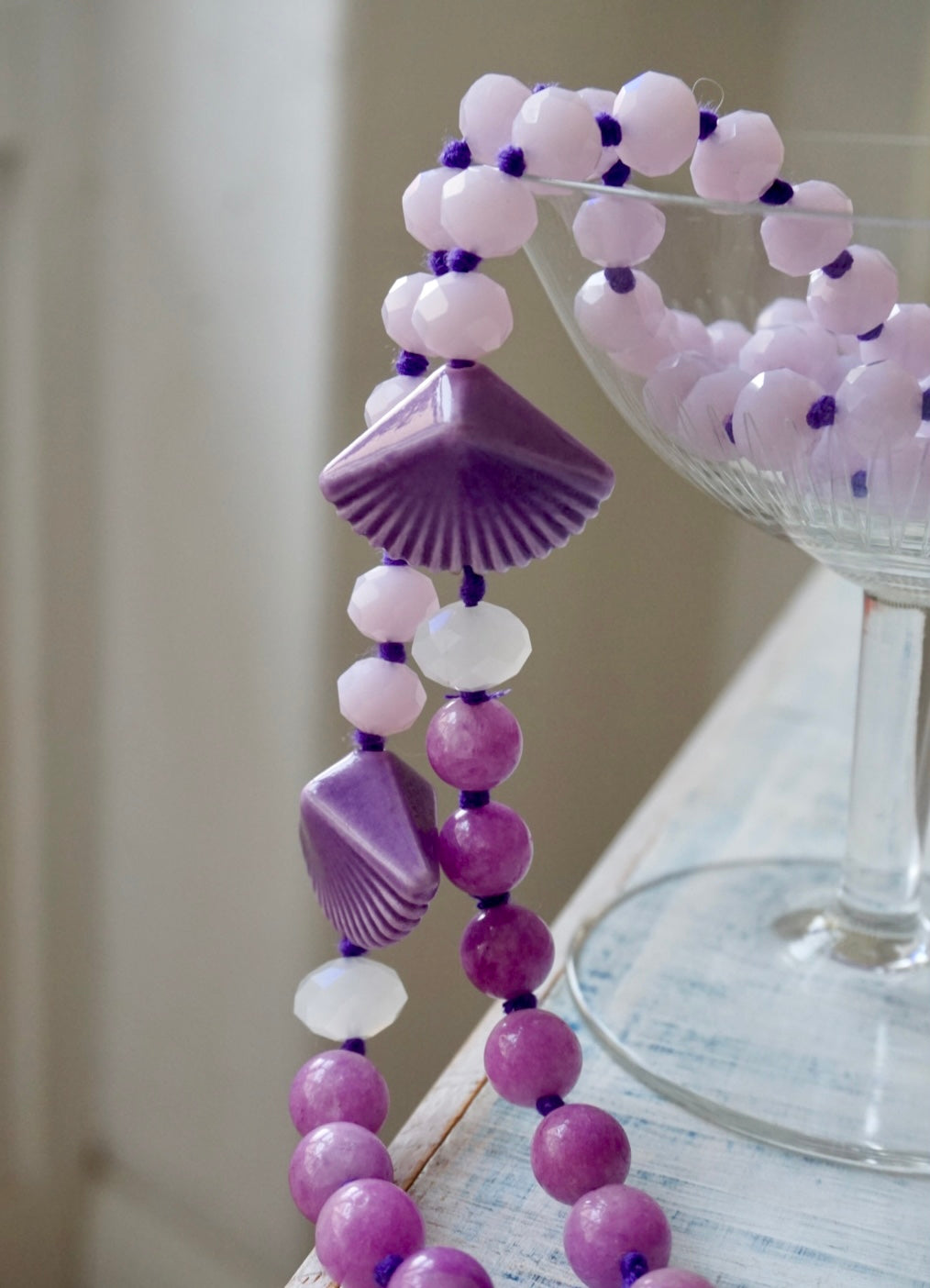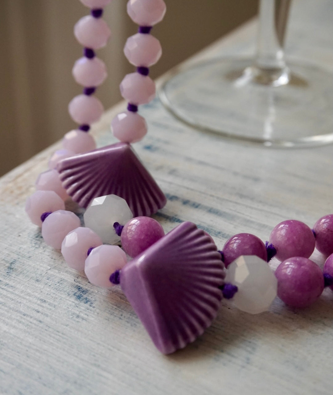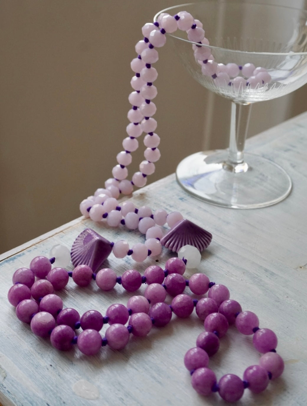 Collane lunghe realizzate dalla nostra fantastica infilatrice con una magica alternanza di cristalli, vetri, pietre dure e nodini colorati. Da poter indossare anche corte, girate due volte!