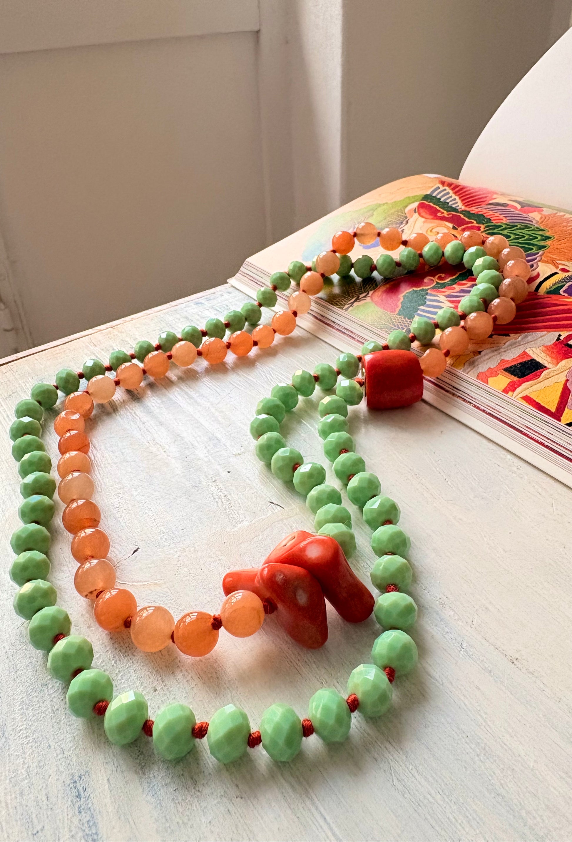 Collane lunghe realizzate dalla nostra fantastica infilatrice con una magica alternanza di cristalli, vetri, pietre dure e nodini colorati. Da poter indossare anche corte, girate due volte!