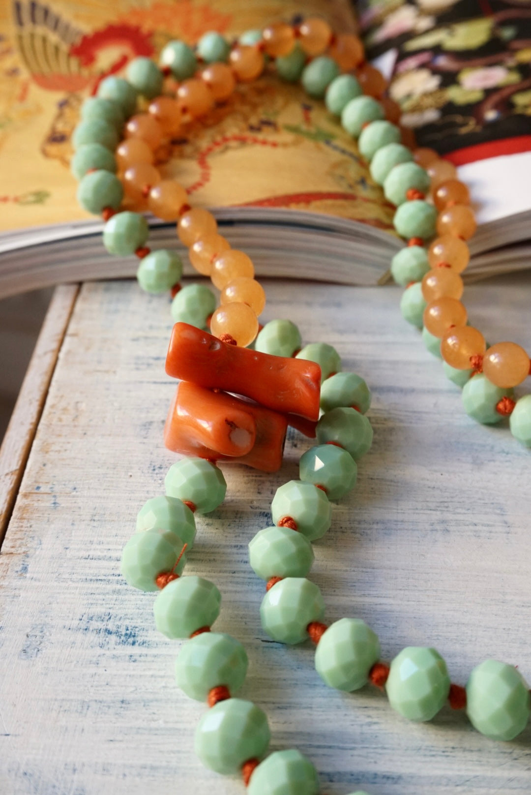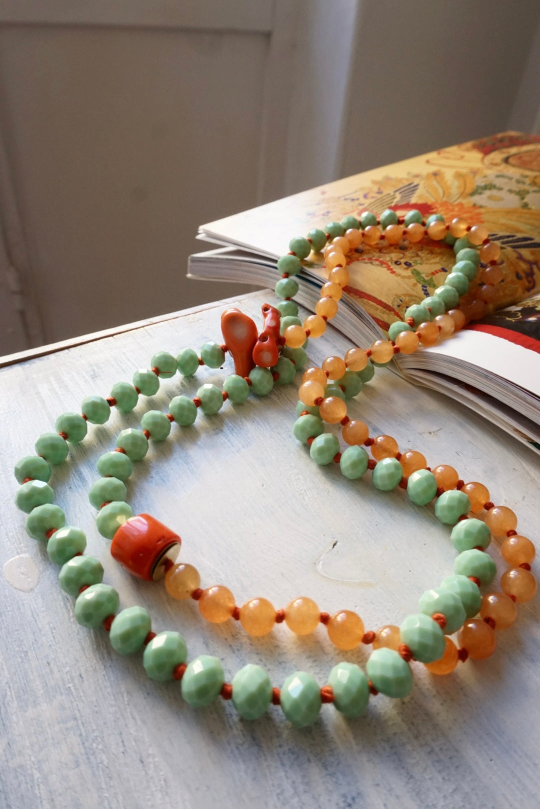 Collane lunghe realizzate dalla nostra fantastica infilatrice con una magica alternanza di cristalli, vetri, pietre dure e nodini colorati. Da poter indossare anche corte, girate due volte!