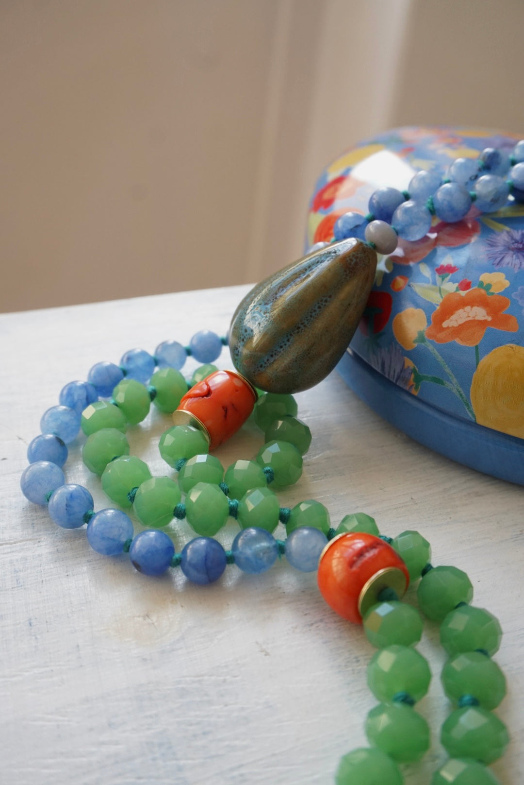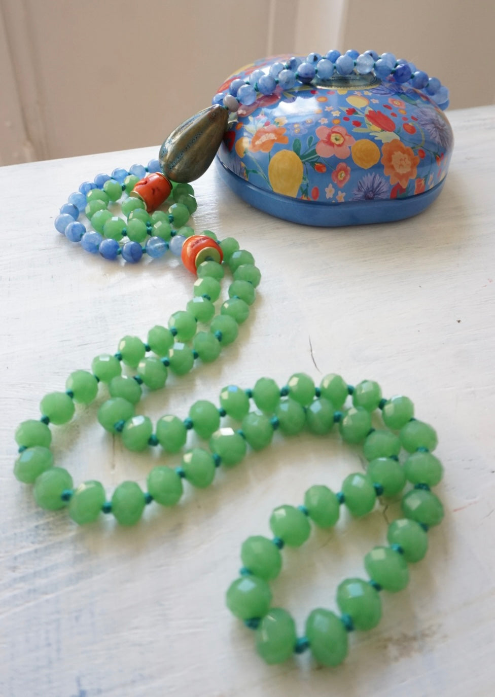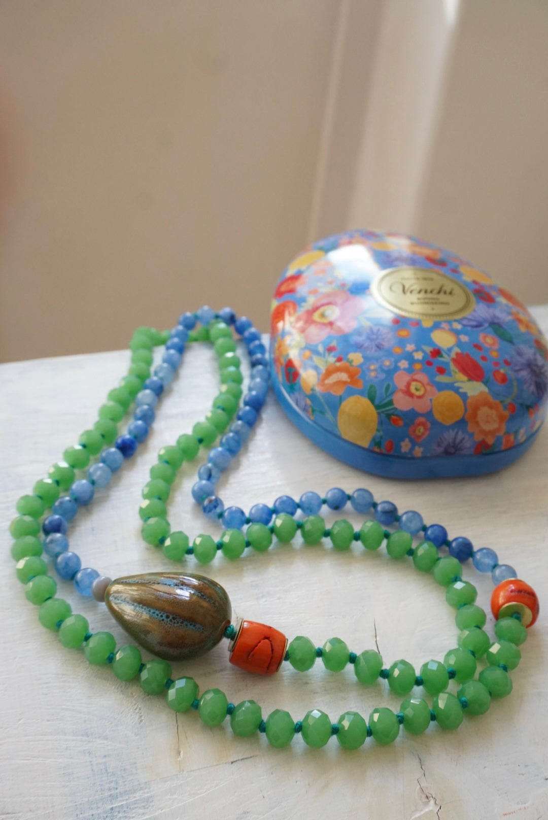 Collane lunghe realizzate dalla nostra fantastica infilatrice con una magica alternanza di cristalli, vetri, pietre dure e nodini colorati. Da poter indossare anche corte, girate due volte!