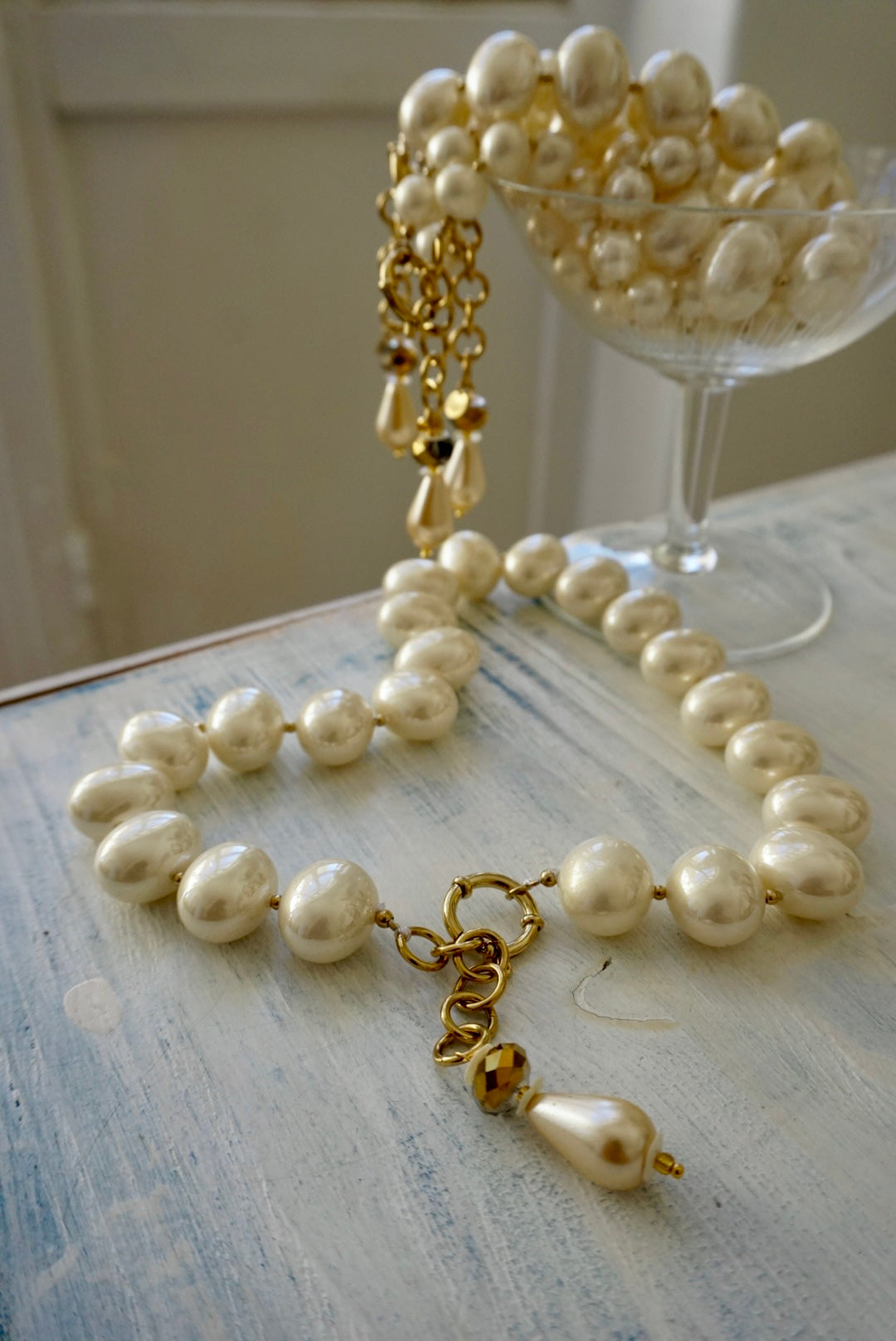 Girocollo con perle in resina di alta qualità, luminose e leggerissime.